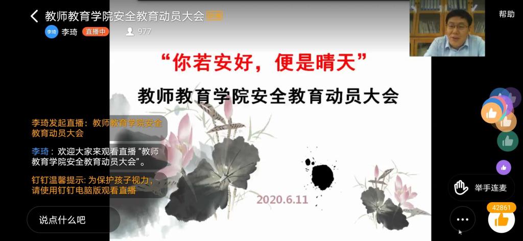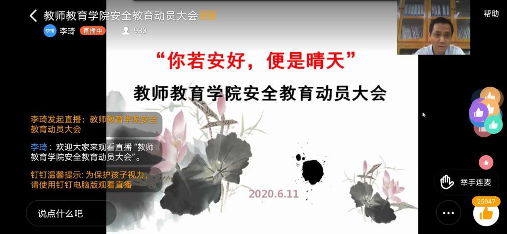 为深入学习贯彻习近平新时代中国特色社会主义思想和十九大精神,坚持以总体国家安全观为指导,全面落实立德树人根本任务,根据学校关于安全稳定工作和疫情防控工作的部署,依托网络平台,营造人人关心安全,个个重视平安的良好氛围,增强学生安全意识和能力,有效防范安全事故发生,保障学生人身安全,太阳成官网根据学校《关于进一步加强常态化疫情防控形势下大学生安全教育工作的通知》,结合我校党委书记王文鹏和校长苏晓红为平院全体师生所写的“你若安好,便是晴天”公开信,于2020年6月11日下午4点通过钉钉视频直播召开了“你若安好,便是晴天”tyc234cc 太阳成集团安全教育动员大会。太阳成官网党总支书记李志华、院长闫江涛、党总支副书记罗鸿伟、副院长赵红利、副院长王小宁及各辅导员老师和全体学生参加了此次线上会议,会议由辅导员李琦主持。