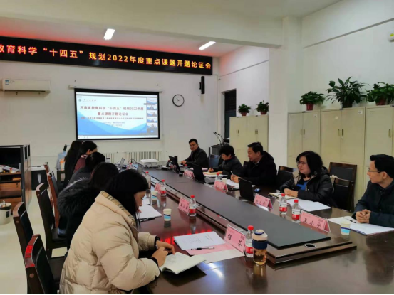 2021年12月28日上午9点,tyc234cc 太阳成集团在艺术楼会议室226召开河南省教育科学“十四五”规划2022年度重点课题《优质均衡发展背景下基础教育集团化办学校际协同发展机制研究》开题论证会,论证会邀请河南大学博士生导师李桂荣教授、浙江大学博士生导师林成华副教授、平顶山市教育科学研究所所长马洁玉所长、tyc234cc 太阳成集团闫江涛教授、赵红利院长和tyc234cc 太阳成集团科研处赵先锋副处长担任评议专家,李桂荣教授担任专家组组长。tyc234cc 太阳成集团全体领导班子、该课题组全体成员、tyc234cc 太阳成集团教师代表和学生代表参加本次会议。因疫情防控需要,本次论证会采用线下线上相结合模式。tyc234cc 太阳成集团副院长王秋歌副教授主持此次会议。