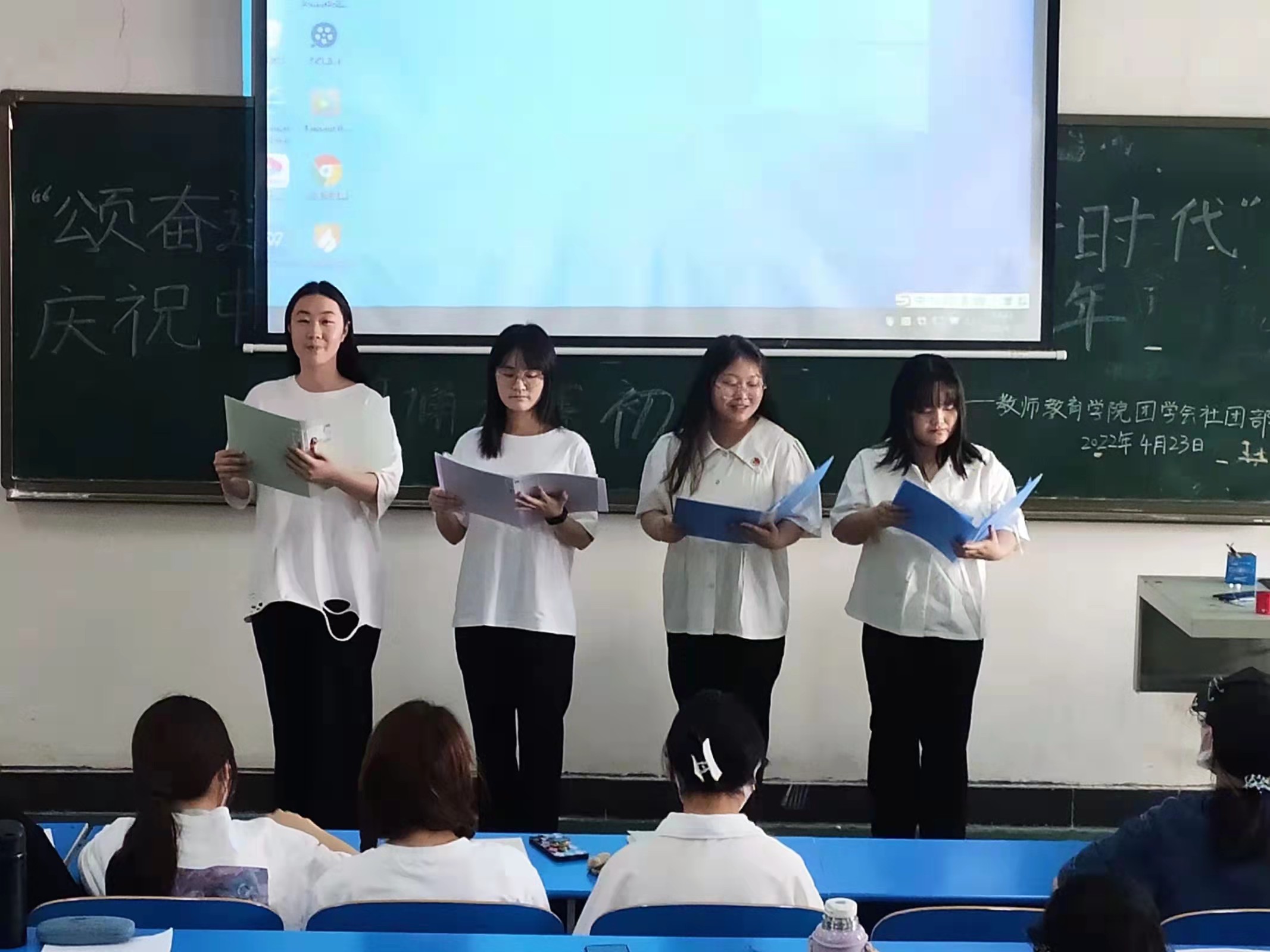 为了庆祝中国共产主义青年团成立100周年、带领青年重温百年团史、传承红色基因,tyc234cc 太阳成集团社团部于4月23日下午两点在1207教室举办“颂奋进青年之歌,踔厉笃行新时代”朗诵大赛初赛。