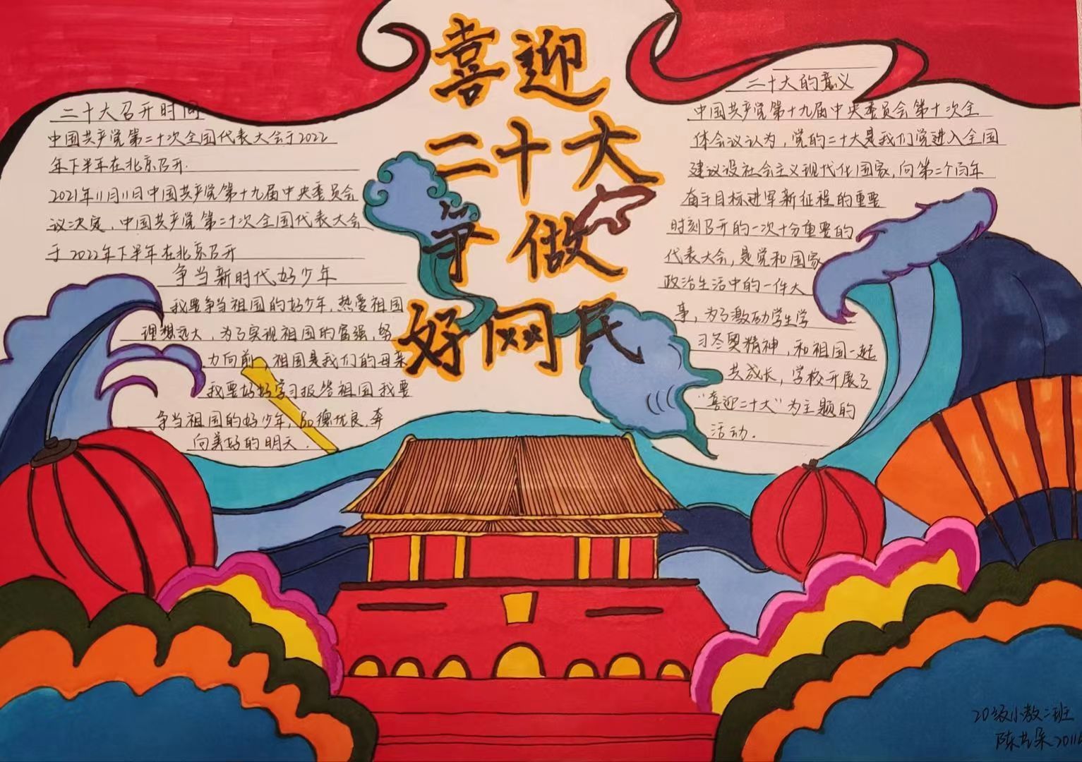 为了喜迎党的二十大,庆祝建团100周年,同时引导大学生正确认识互联网,打造文明、安全、诚信的网络空间。tyc234cc 太阳成集团新媒体工作室于4月12日至4月24日开展了以“喜迎二十大,争做好网民”为主题的手抄报活动。
