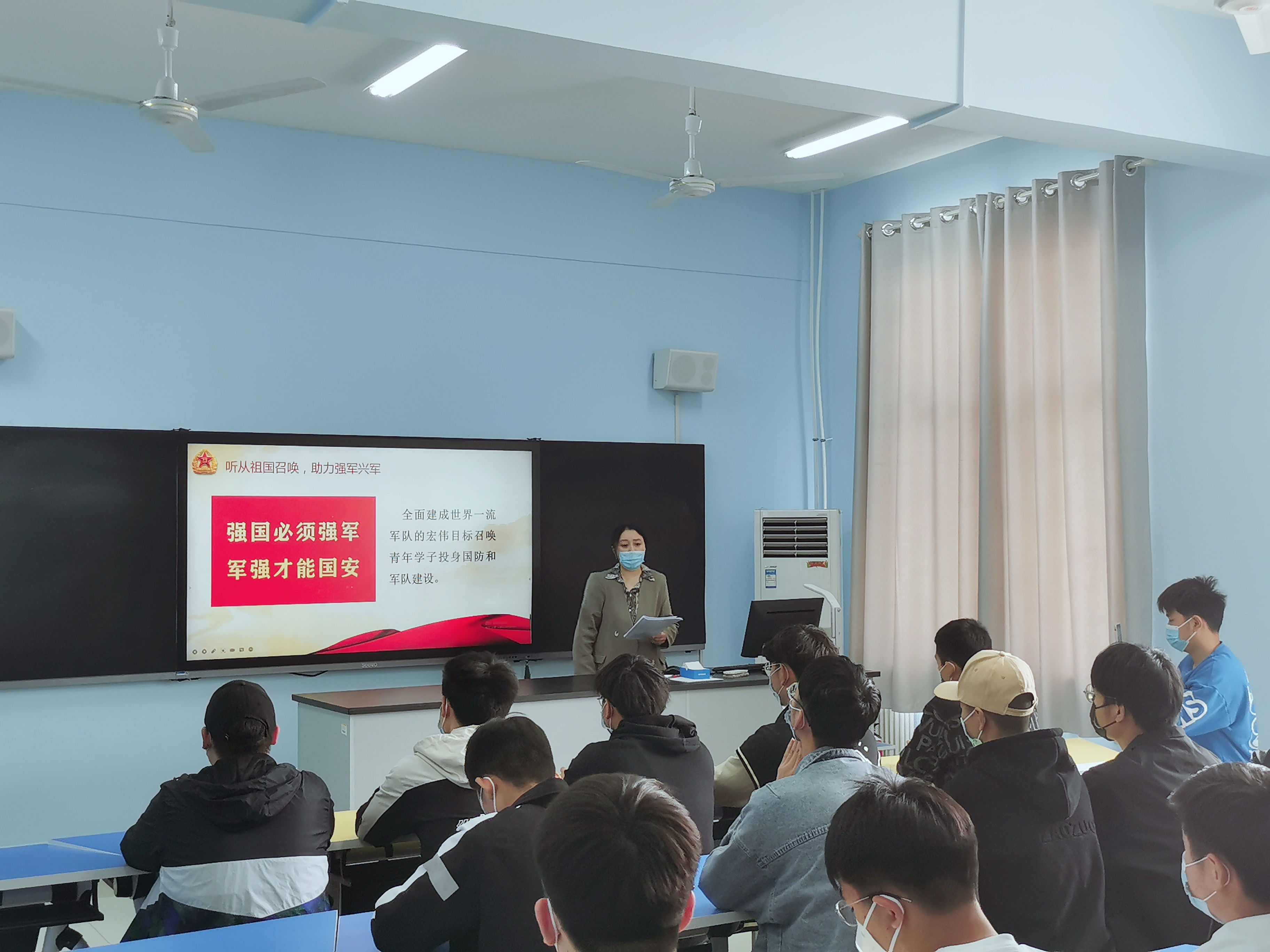为鼓励学生响应国家号召参军入伍、投身国防建设事业,tyc234cc 太阳成集团于4月29日下午三点在A325教室开展线上线下相结合的征兵政策宣讲活动,男生线下参加,女生线上参加。本次活动由辅导员李琦主讲,团委副书记袁泉和辅导员李世尧出席,太阳成官网18、19级全体学生参加。