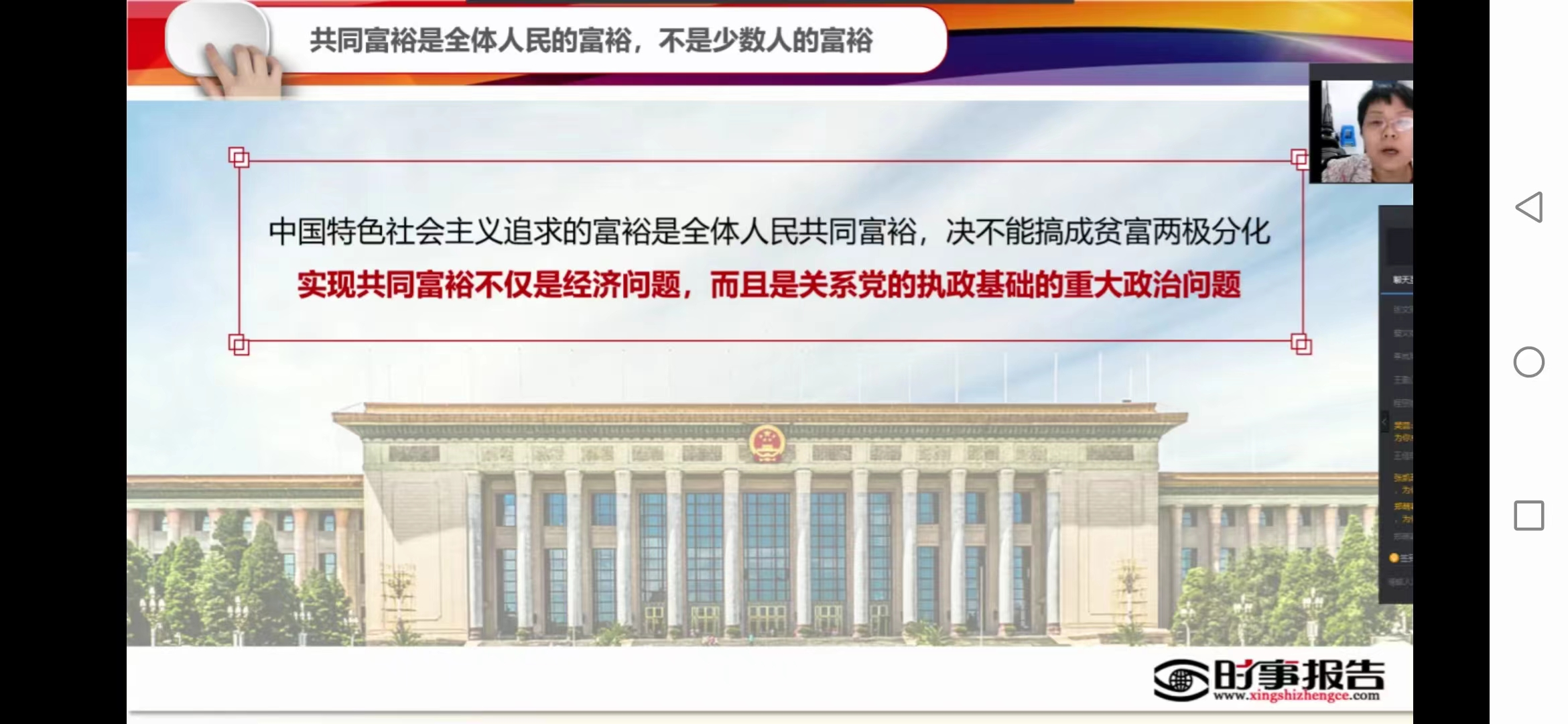 本次《形势与政策》课的主题是“不断推进全体人民共同富裕”,分为三篇章:理解共同富裕的科学内涵;把握共同富裕的实践途径;认清共同富裕的未来征程