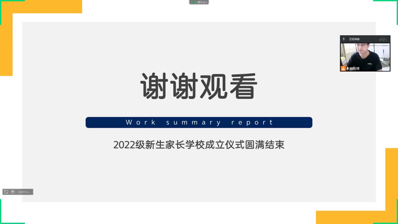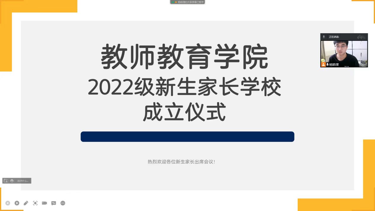 2022年09月18日,tyc234cc 太阳成集团2022级新生基本已返校完毕,且家庭经济困难新生入学有关工作也已陆续完成,因此,22级辅导员杨皓璞老师根据学校学院资助要求以及学生和家长需求,通过腾讯会议线上举办tyc234cc 太阳成集团新生家长学校成立仪式。