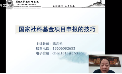 12月3日下午为《国家社科基金项目申报的技巧及注意事项》,主讲专家为陈武元教授。为厦门大学教育研究院教授,兼任厦门大学一带一路研究院常务副院长。国家自然科学基金管理学部项目通讯评审专家,教育部社科基金重大和面上项目评审专家、多个国家级、省部级项目评审专家。主要研究方向为比较高等教育、民办高等教育、教育经济与管理等。陈武元教授对项目论证的基本要素进行了整体介绍,对如何养成项目论证的科研思维以及项目设计的基本框架进行了分享,干活满满、受益匪浅。