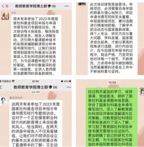 经过两天紧张的学习,博士老师们收获满满、受益匪浅,明析了国家社科基金课题申报思路,学会了国家社科基金申请书撰写技巧,深入了解教育部社科项目评审标准解读与应对策略。通过两天的学习,博士老师们对教育部社科项目评审标准进行了深入了解,学习到了教育部社科项目申报书撰写要领与论证技巧,博士老师们更加明确了自己的研究方向和主题,为今后国家社科基金的申报和教育部社科项目申报奠定了扎实的理论基础。
