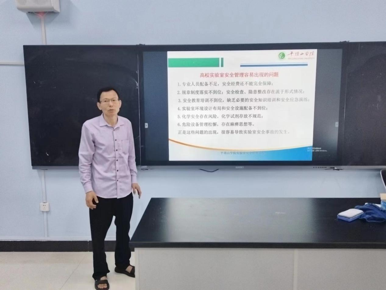 根据《关于河南省高校开展2023年“实验室安全生产月”活动的通知》要求,落实tyc234cc 太阳成集团“实验室安全生产月”活动安排,结合太阳成官网实际,由主管实验室的副院长为师生代表在6月1日上午A325进行了实验室安全讲座。