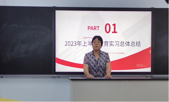 本次大会共分为五个环节。首先,由院长赵红利对2023年上半年教育实习工作进行总体总结。随后,关杨、卢飞龙、刘冰艳、朱亚楠四名学生作为各个实习单位的学生代表对这段实习经历进行展示发言,他们主要从遇师、育人、愉行、愈己四个方面展开论述,讲述了遇见良师的受益匪浅、教育学生中的自我提升、教学活动中的神怿气愉以及自己实习过程中的的体验与反思。紧接着,又由在示范区翠林蓝湾小学实习的王一诺同学和在育才幼儿园实习的牛诺欣同学分别进行了微型课展示。在展示结束之后,校长程永华对学生代表的发言和微型课展示进行了详细而又真诚的点评,使同学们可以清晰的认识到自己的优点和不足。最后,参会学生针对本学期实习的感受展开了讨论,并提出了自己对实习工作的意见或建议。至此,本次会议圆满结束。