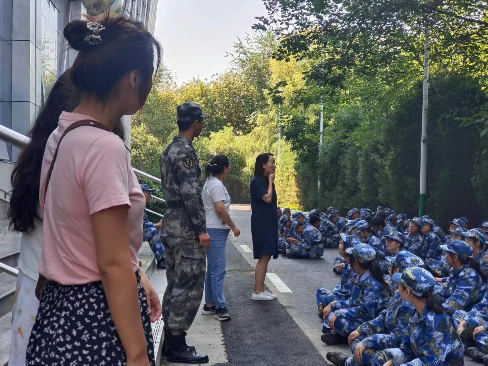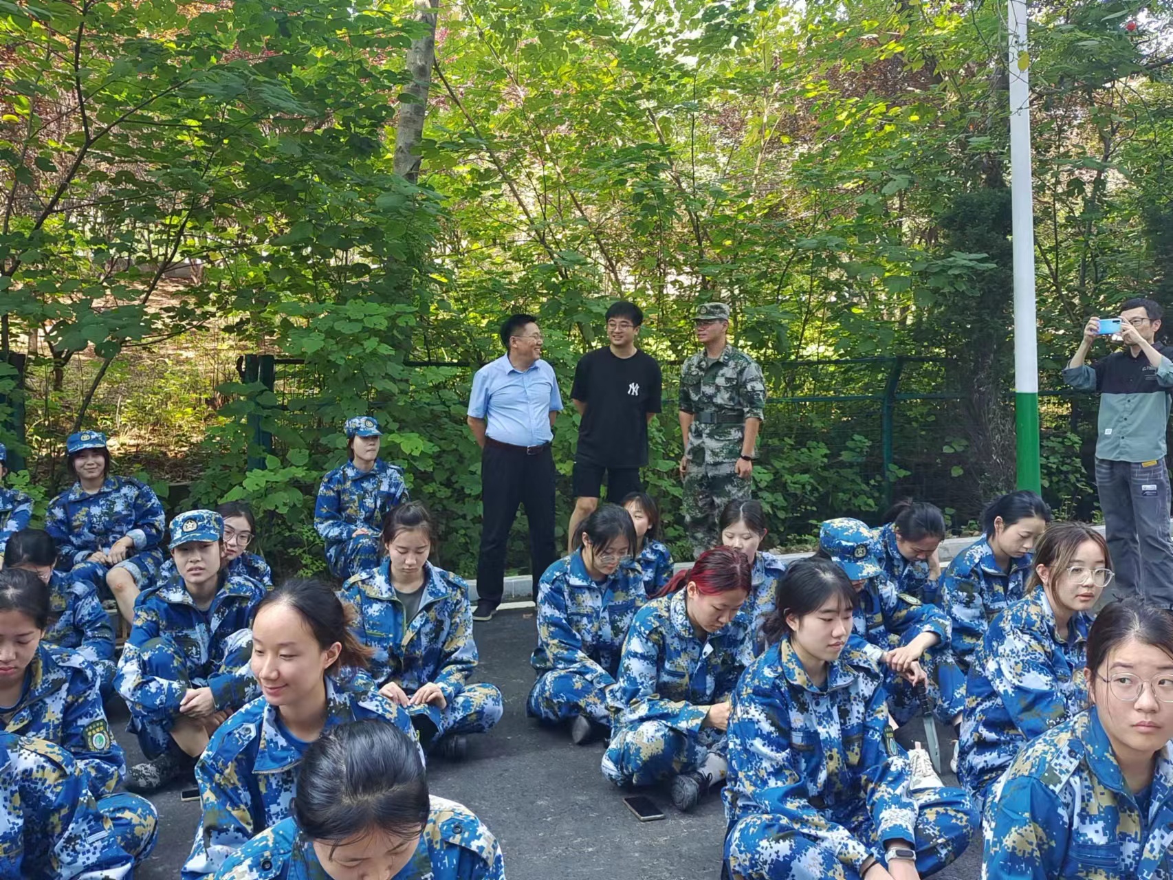 全体参训学生及教官对各位领导老师的到来表示热烈欢迎。党委书记李志华代表学院对多日以来悉心教导学生的承训教官表示感谢,对大家英姿飒爽的精神风貌、整齐划一的步调及铿锵有力的口号声予以高度赞扬。同时,李书记也对参训学生提出了殷切期盼,希望同学们在军训中要继续发扬吃苦耐劳、不畏艰难的精神,努力通过军训这一人生重要历练场砥砺意志品质,收获更大进步。程书记对同学们的身体健康进行了关心和询问,并叮嘱同学们要注意防暑、注意身体、注意安全,遇到困难及时向教官和辅导员老师沟通,全场暖意融融。